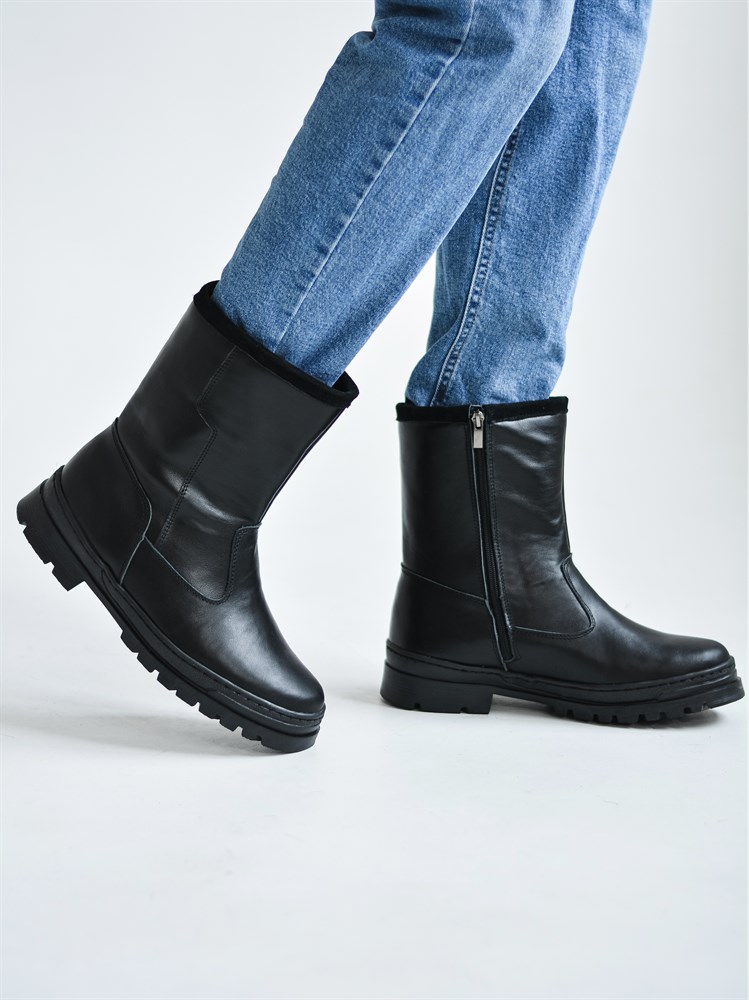 Полусапоги мужские на литой подошве Черные. Кожа. Молния.(МЛ3-01)
