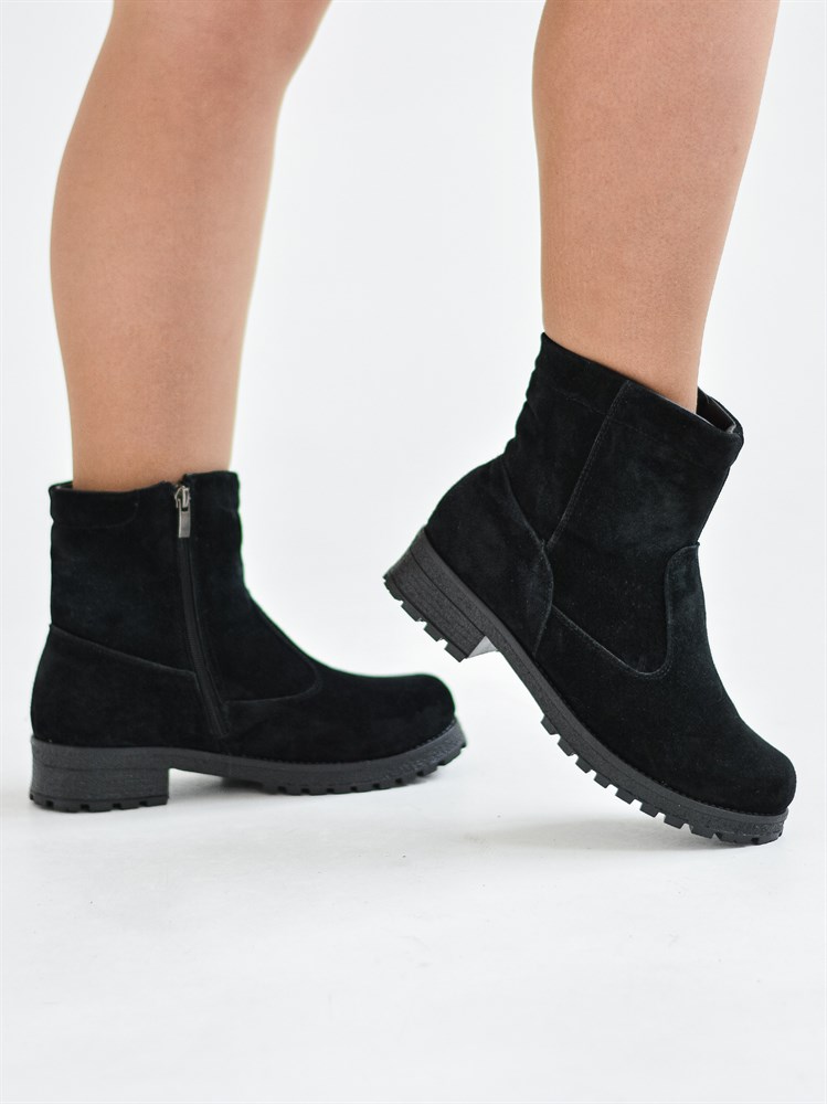 Ботинки женские на литой подошве черные, замша, молния (ЖЛ3-05)