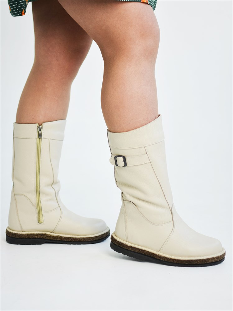 🔹 Сапоги женские "Монголки" белые с замком на подошве с войлочной прослойкой