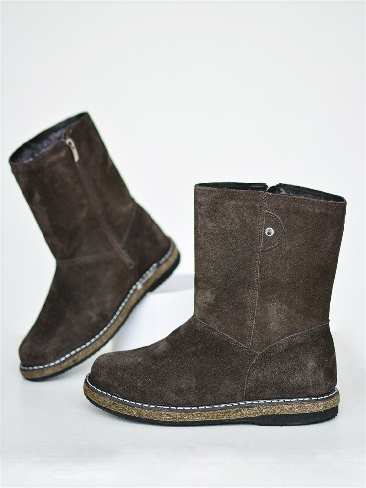 Полусапоги женские на войлочной подошве. Коричневые. Замша. Молния. Бабушкины (А618.13)(ЖВ3-07)