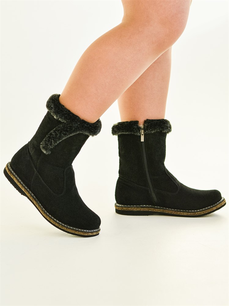 Полусапожки женские на войлочной подошве черные, замша, молния, с опушкой (ЖВ3-02)