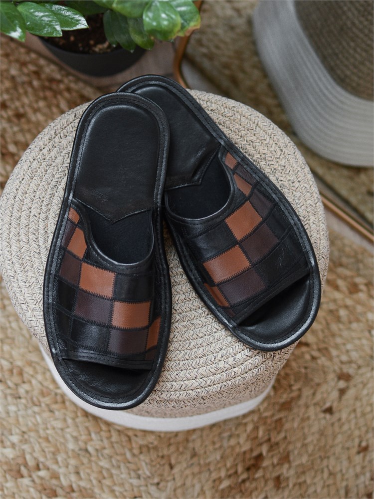🔹Тапочки мужские домашние открытые из натуральной кожи