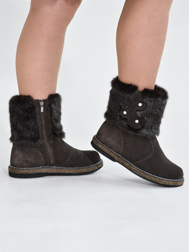 Унты женские на войлочной подошве. Коричневая норка. Короткие. Молния (ЖВ3-06)
